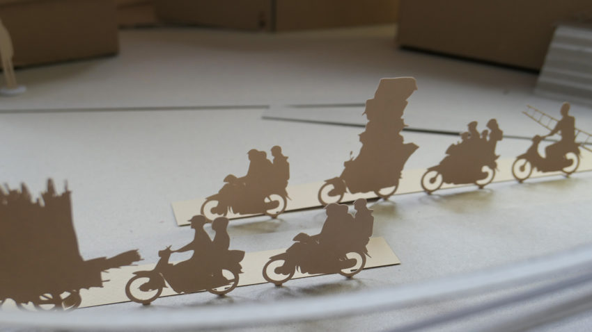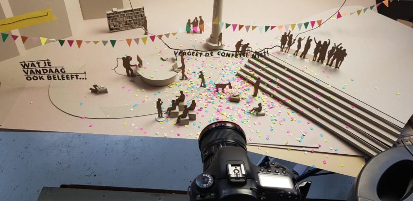 We made paper cut sets, spending countless hours on tiny details and lighting before finally filming because we wanted to capture most things in-camera.